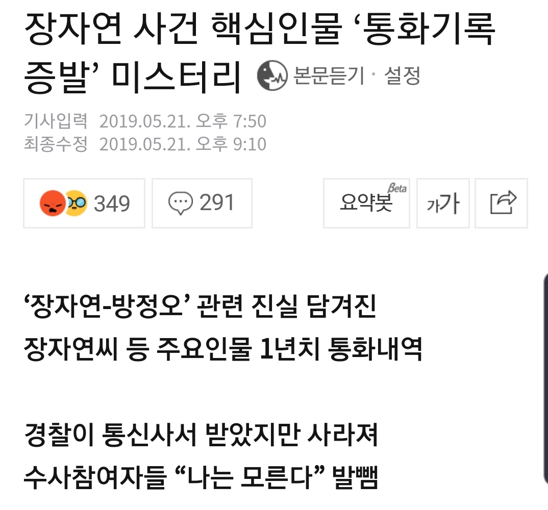 | Subject | 장자연 사건 핵심인물 통화 기록 증발 미스터리 |