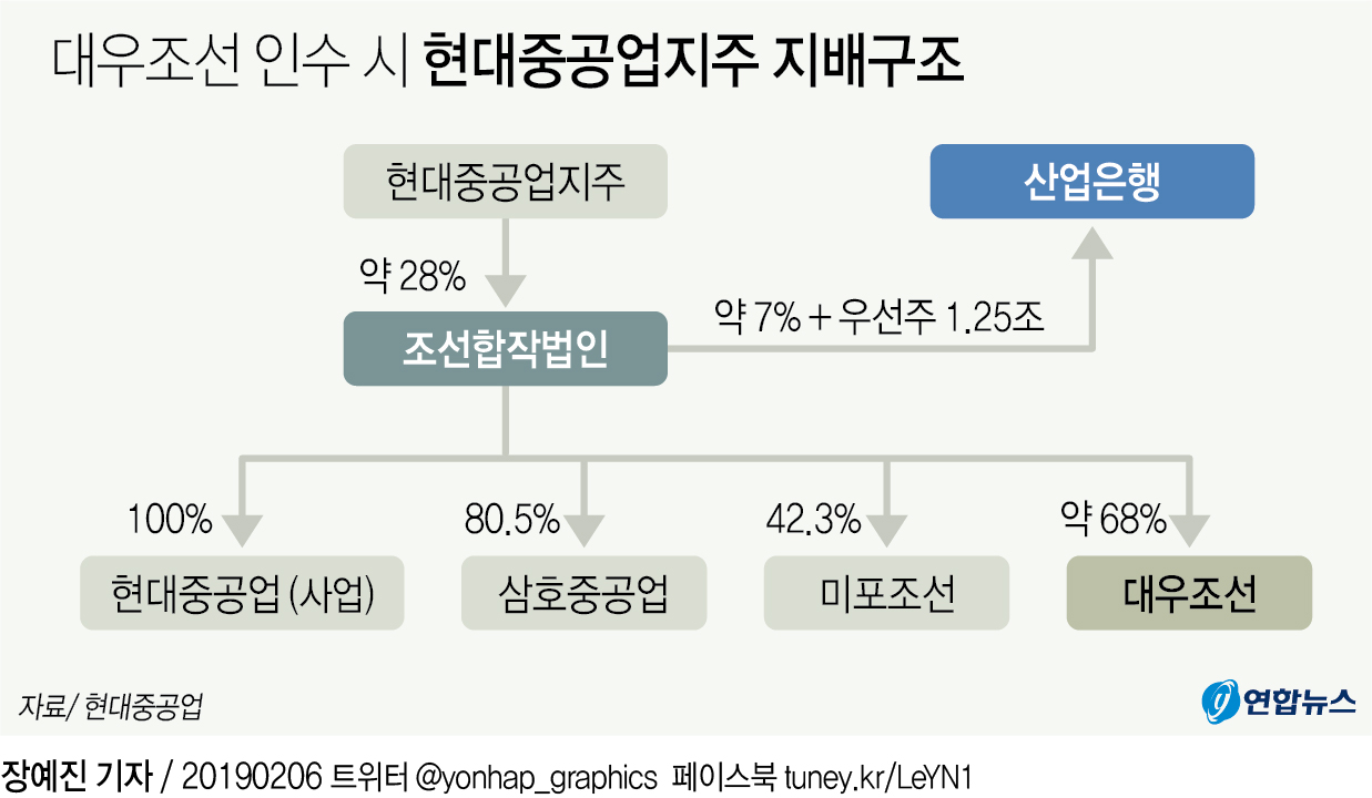 http://biz.chosun.com/site/data/html_dir/2019/05/29/2019052900951.html 현대중공업은 이미 지주회사가 따로 있습니다. 하지만 이번에 대우조선해양과 합병을 하면서 중간지주회사를 만들어 투자회사로 하고 나머지 생산시설을 사업회사로 하는 지배구조 개선을 하기로 했습니다. 국영? 기업인 대우조선해양을 살리거나 구조조정하기 위해서 정책적으로 현대중공업에 넘기는 것이지요. 뭐 시장의 반응은 주가가 말해줍니다만 앞으로 잘 되어야 하겠지요. 0