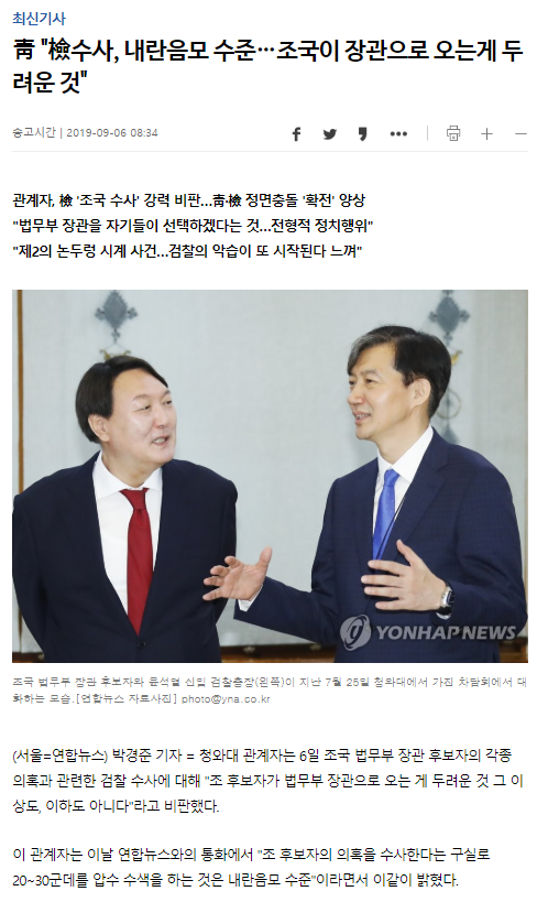 Subject   靑 "檢수사, 내란음모 수준…조국이 장관으로 오는게 두려운 것"