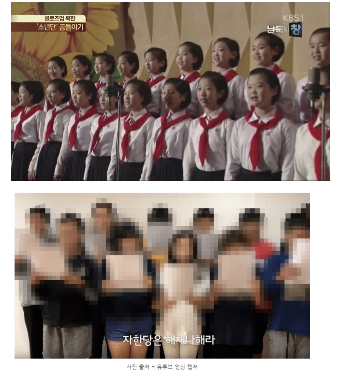 북한이나 일부 종교단체에서 아이들에게 잘못된 가르침을 가진 노래를 부르게 만드는 것과 무엇이 다른지,
