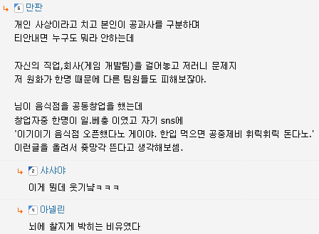 저 같은 게임인, 그리고 게임회사 입장에서 게임을 망하게 만들고 같이 게임 만드는 회사 사람들도 망치는 점에서는 일베나 메갈이나 똑같은 해악입니다. 애초에 그런 검증을 일개 회사가 한다는 게 싫으신 분들이라면, 그렇게 말씀하시는 것이야 자유이지만, 싫으신 분들이 싫어할 자유가 있듯 저처럼 그런 작자들에게 엮여서 피해를 받고 싶은 가능성을 겪기를 원하지 않는 사람들이나, 회사의 이익을 위해 그런 반사회적 요인을 걸러내고 싶어하는 입장도 역시 그 '자유'에 해당하겠지요.