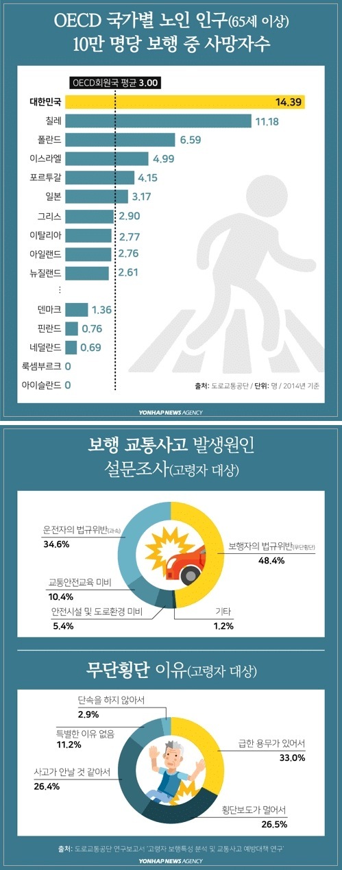 | Subject | 한국 노인 보행자 사망률 OECD 1위…그 이유는(사진이 올라온 연합뉴스 원기사로 재교체) |