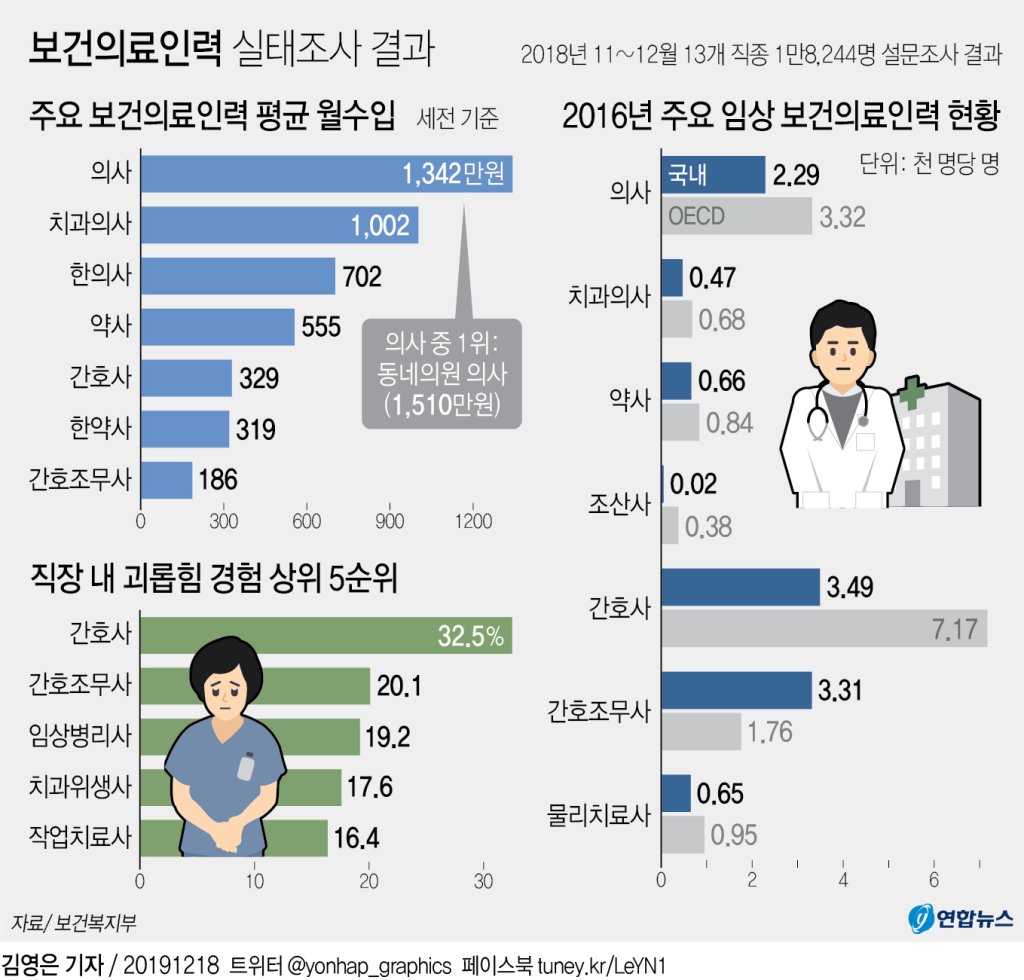 17870 의료/건강동네의원 의사 월수입 1천510만원…간호사 33% 직장 괴롭힘 경험 21 다군 19/12/18 4401 0