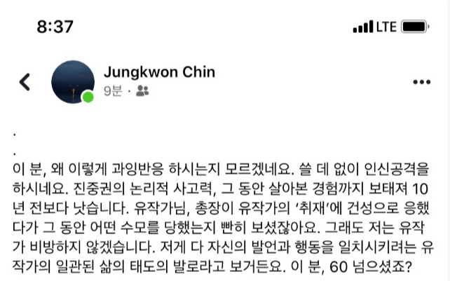 Subject   "논리력 감퇴" 유시민 비판에…진중권 "이분, 60 넘으셨죠?"