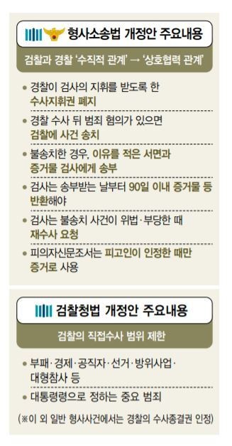 어제 형사소송법 개정안과 검찰청법 개정안이 국회에서 통과되었습니다.
