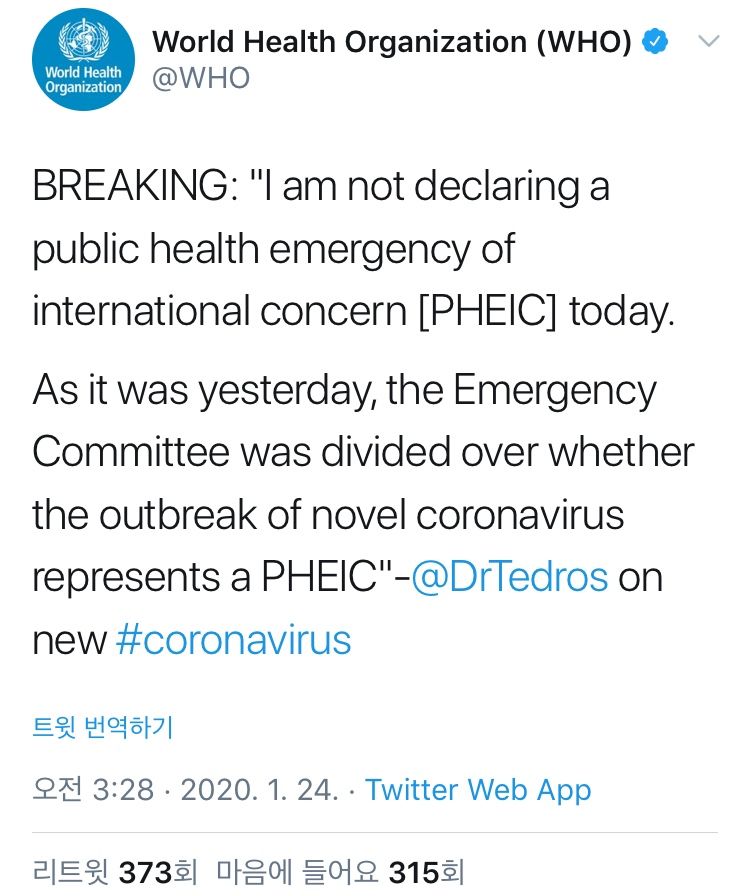 | Subject | WHO “중국 신뢰…전세기 투입 등 ‘외국인 탈출’ 지지 못해” |