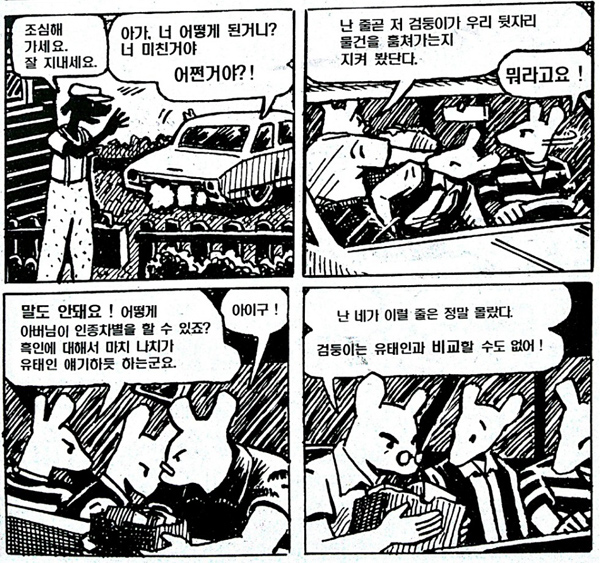 딱 저 사람을 봤을때 그 사람의 외모 정도 말고는 그 사람에 대해 아무 정보가 없고, 사람은 일단 자신의 생존이 제1목표이니 저렇게 본능적으로 생각이 가는 것이 이해는 갑니다.(정당하다는 게 아님) 그리고 질병이 옮을까봐 경계하는 마음과 그 질병을 퍼뜨리는 것에 대한 불쾌해하는 마음과 그 인종집단의 정체성 자체를 비하, 혐오하는 마음은 굉장히 밀접하게 연결되어 있죠.