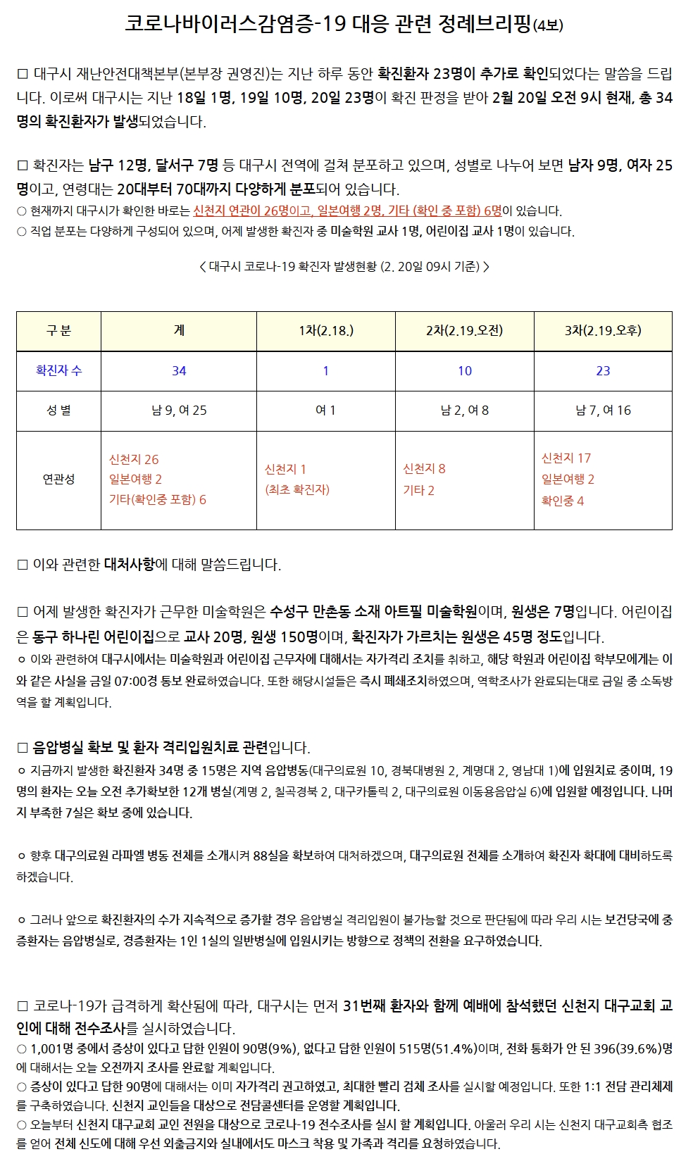 개신교 특성상 오밀조밀 모여서 손잡고 소리지르고 눈물 콧물 침 등등이 좁은 공간에 둥둥 떠 다녔을테니 앞으로 더 많이 나오겠죠. 더구나 신천지 라는 교회 때문인것 같은데, 신천지 신도들은 다른 교회 신도 데려올 목적으로 2군데 이상 드나들었을테니 생각만 해도 끔찍 하네요.