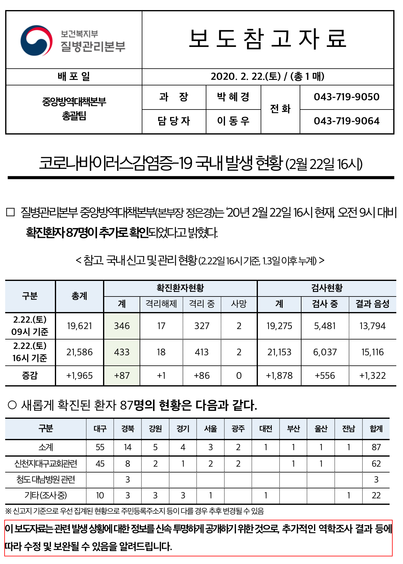 | Subject | 코로나19 확진자 87명 추가 발생…모두 433명 |