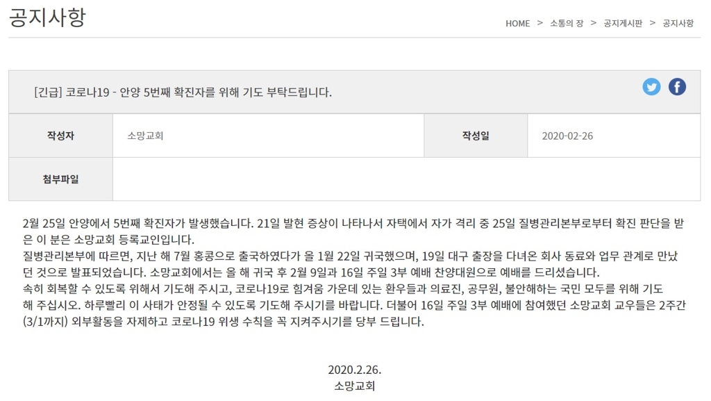 | Subject | 서울 명성교회 이어 소망교회서도 코로나 확진자 발생 |