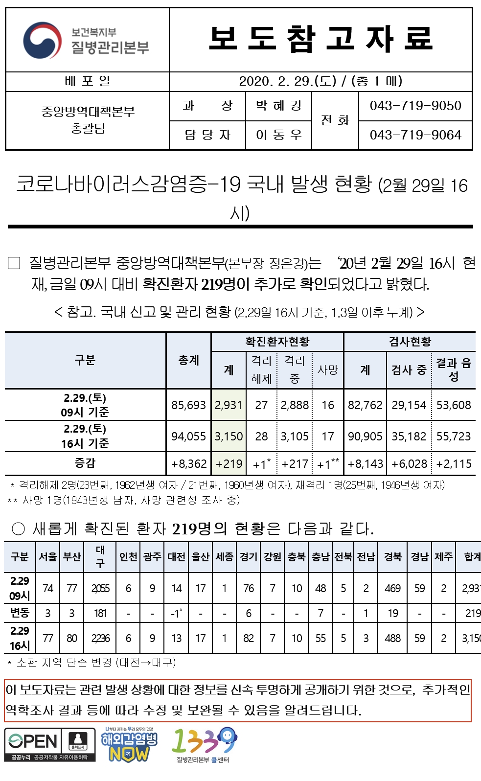 https://www.yna.co.kr/view/AKR20200229063300004 대구시 발 소식이 오전에 있었는데, 법무부에서도 확인을 했나 보군요. 2월 27일까지 지난 8개월간 기록 대상이고, (신천지에서 제출한 명단 기준으로 대조했겠죠?) 국내 신도 211,462명 중 3,572명이 중국->한국 입국 기록이 있고, 그중 41명이 우한에서 들어왔다고 합니다. 해외 신도 33,281명 중 중국->한국 입국 기록이 있는 사람은 38명이라고 합니다. 그중 1명이 우한에서 들어왔다고 합니다. 주민등록번호가 없는 경우가 있고, 근본적으로 신천지가 제대로 된 명단을 제출했는가 하는 문제도 있어서 한계는 있는 것 같습니다. 2