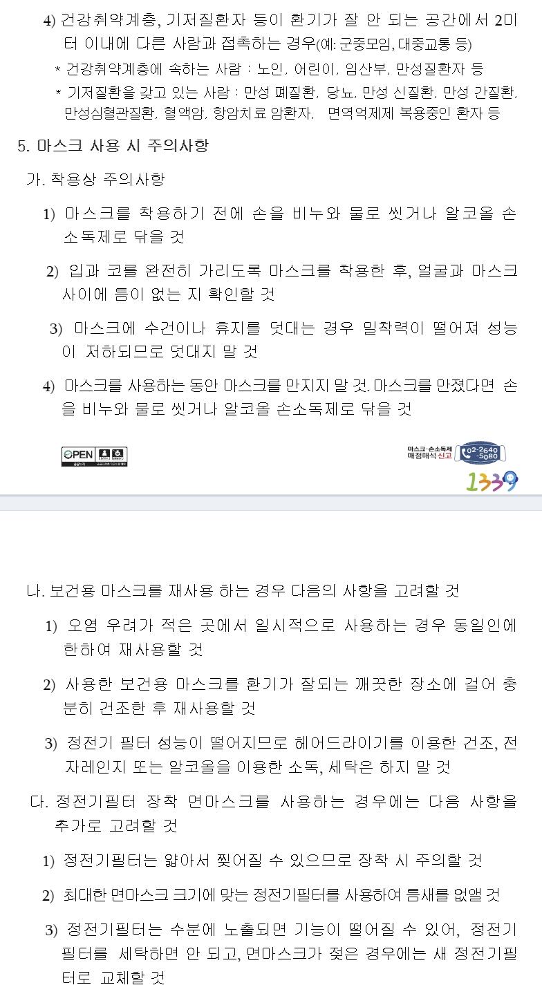 https://www.yna.co.kr/view/AKR20200303148351017 https://www.mfds.go.kr/brd/m_99/view.do?seq=43991&srchFr=&srchTo=&srchWord=&srchTp=&itm_seq_1=0&itm_seq_2=0&multi_itm_seq=0&company_cd=&company_nm=&page=1 외국에서는 일반인 마스크 사용(구입) 자제를 권고하는 경우들도 많고, 사용할 필요가 없다고 사태 초기부터 강조해온 경우들이 많은데, 우리나라는 상대적으로 많은 사람들이 밀집된 환경에서 생활하는 데다가, 아파도 쉴 수 없는 문화가 강해서 마스크 착용 필요성이 상대적으로 강조되어 온 면이 있는 것 같습니다. (우리나라도 초기에 감염자 혹은 감염 의심자가 아니면 마스크 사용보다는 손 씻기를 강조하는 전문가들의 의견도 언론에 제법 노출되었었습니다.) 한편으로, 국내외 전문가들은 손 씻기와 더불어 얼굴을 안 만지는 것도 강조하는데, 이 부분이 상대적으로 잘 안 알려지는 것 같습니다. 얼굴 만지는 습관은 고치는 것이 굉장히 어렵기 때문에, 이참에 의식적으로 얼굴을 가능한 안 만지도록 습관을 고쳐보는 것도 좋을 것 같습니다. 개인적으로 짧은 외출 시 방한을 겸해서 세탁/건조가 용이한 얇은 면장갑을 요즘 착용 중인데(이것도 썼다 벗었다 하면 의미가 없고, 오히려 장갑을 통해 바이러스를 옮길 수 있기 때문에, 손을 자주 씻고 소독하는 것이 더 좋겠고, 의료/방역 현장에서는 일회용 장갑을 사용해야 합니다만), 이게 얼굴을 안 만지게 하는 데도 효과가 있는 것 같습니다. 맨손이면 아무래도 무의식적으로 얼굴에 손이 가는 경우들이 있더군요. 우리나라의 경우 확진자가 급증하고, 최근의 마스크 수급 문제가 핫이슈가 된 것이 반영된 면이 있는 것 같습니다만, 참고하시기 바랍니다. https://youtu.be/i_-5JzrSdCE https://youtu.be/RoAy4emSeOQ?t=3062 오후 방대본 브리핑에서 마스크 관련 답변은 51분부터 보시면 될 것 같습니다. 미 보건 책임자 "마스크 잘못 쓰면 코로나 더 쉽게 걸린다" https://www.yna.co.kr/view/AKR20200303068200009 *에고 티타임에 올린다는 게 뉴스게시판에 올라가 버렸습니다. 그래서, 관련 뉴스를 추가하였습니다. 1