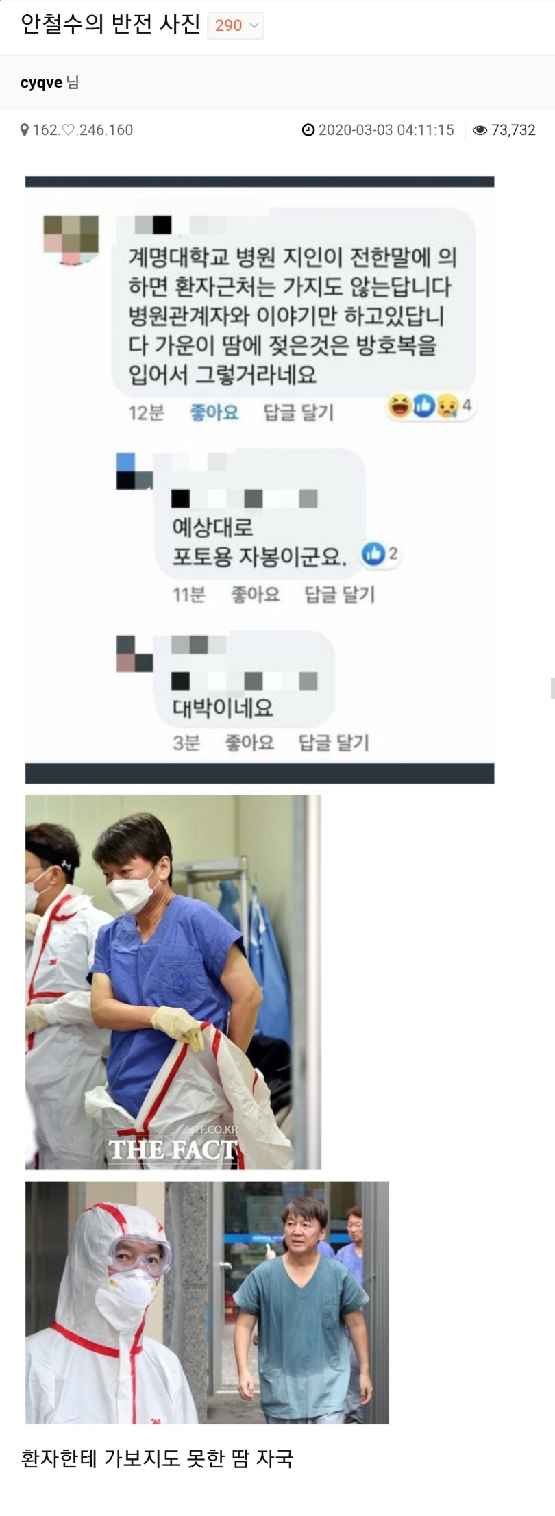 모사이트에 안철수가 환자 근처에도 안간다는 루머가 올라왔는데 이에대한 반박 기사가 올라왔습니다. 환자분들에게 조금이라도 도움이 되는 방향으로 이야기가 진행되었으면 좋겠습니다. http://naver.me/Fmp4fKxq '환자 근처도 안간다' 루머에…안철수 측 "국민이 단죄해달라"(종합) 0