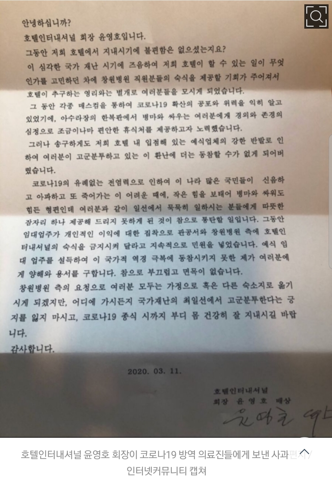 | Subject | "우리 호텔 통째로 쓰세요"…쫓겨난 의료진에 쏟아진 응원 |