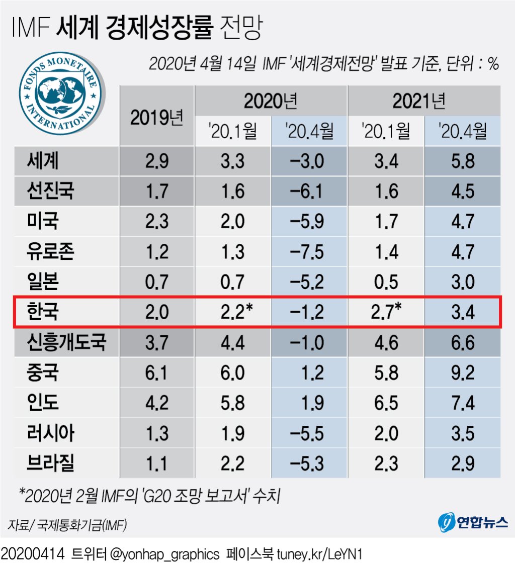 경제IMF, 코로나19 대봉쇄로 올해 세계성장률 -3% 전망…6.3%p 내려 3 |