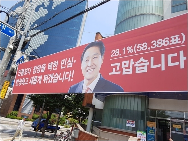 정의당이 총선 후 지역에 ["인물보다 거대 양당을 택한 민심. 반성하고 새롭게 뛰겠습니다"]라는 구호의 현수막을 걸었다고 합니다.