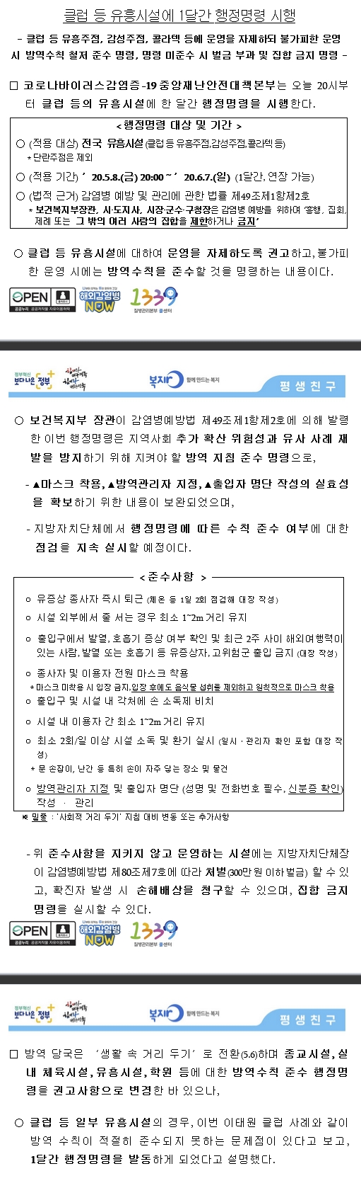 '클럽 집단감염 비상'…오늘부터 유흥시설 운영자제 행정명령(종합)