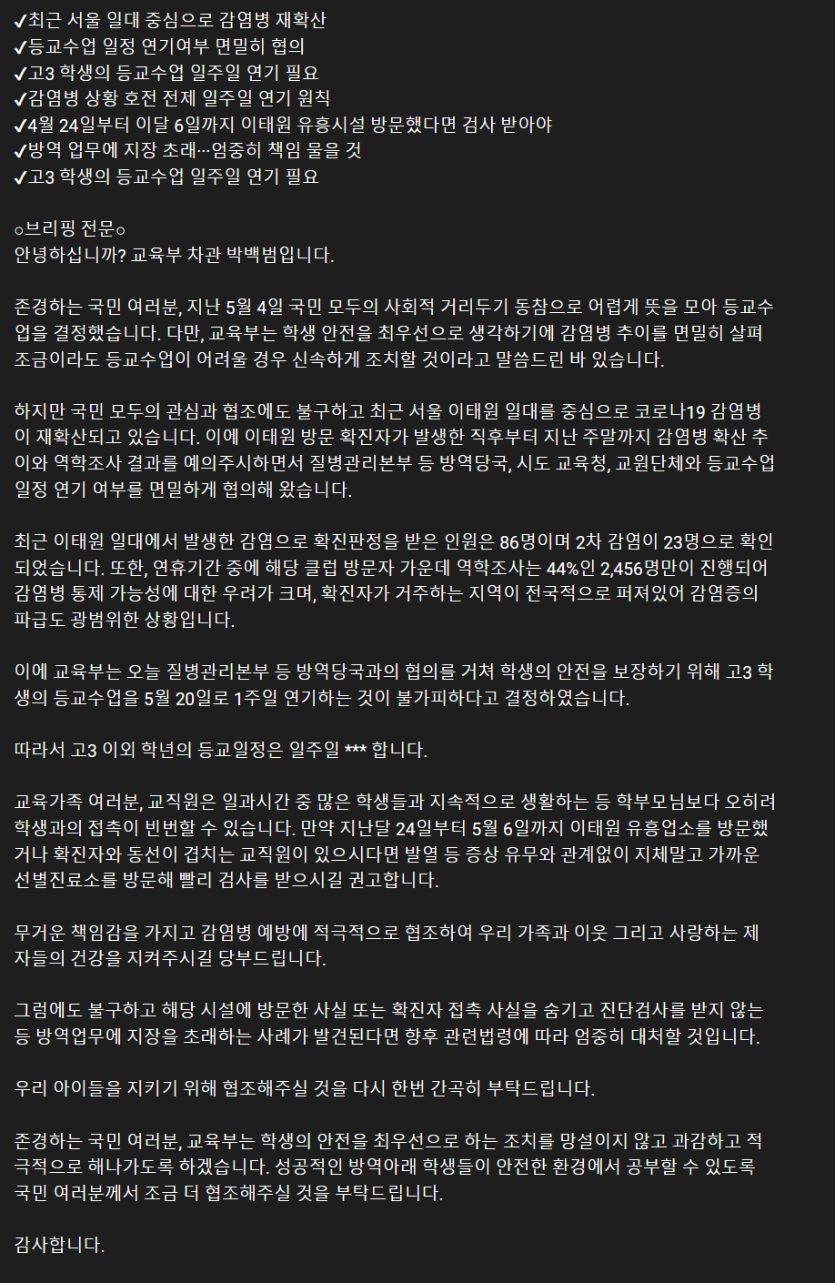 사회클럽발 지역감염에 또 일주일 미뤄진 등교…다음주도 불투명(종합) 8 |