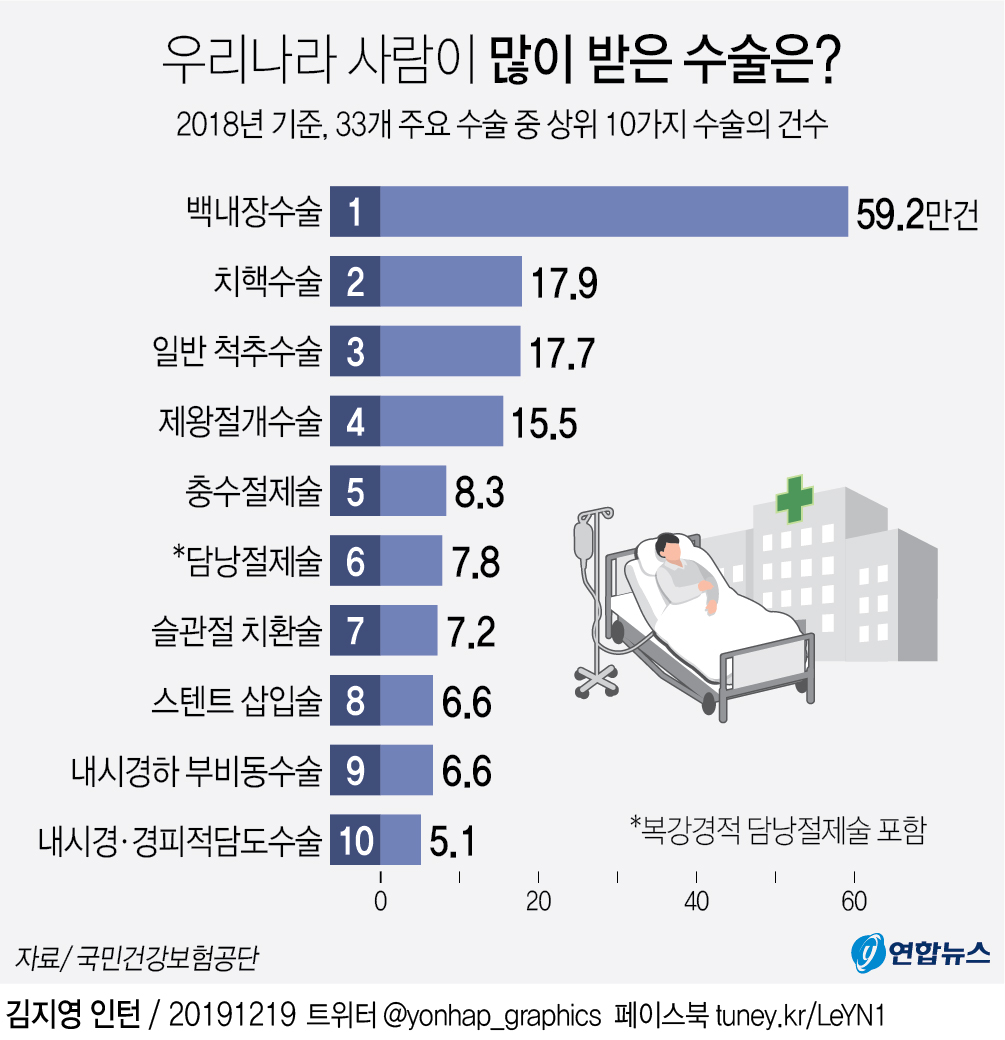 1년에 50만건 넘게 수술하는데, 소비자 보호원에 피해구제 신청이 3년간 40건 되었습니다.