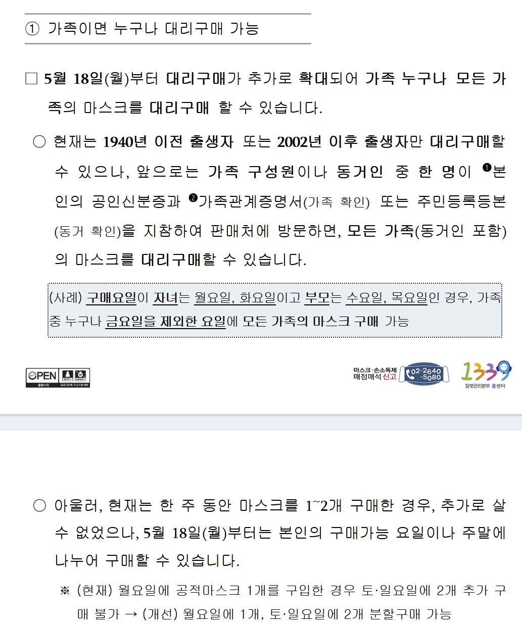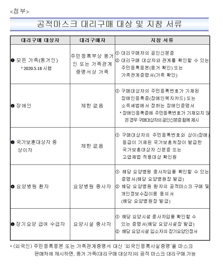 가족 모두 대리구매 가능.취약계층 특별 공급 (보도자료)