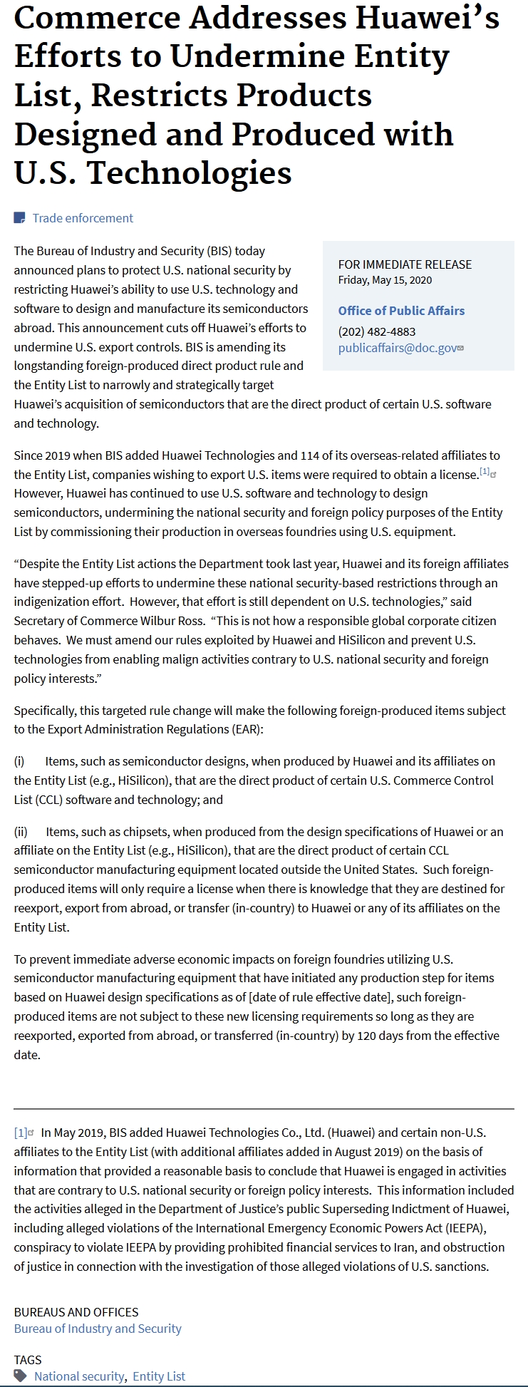 https://www.commerce.gov/news/press-releases/2020/05/commerce-addresses-huaweis-efforts-undermine-entity-list-restricts