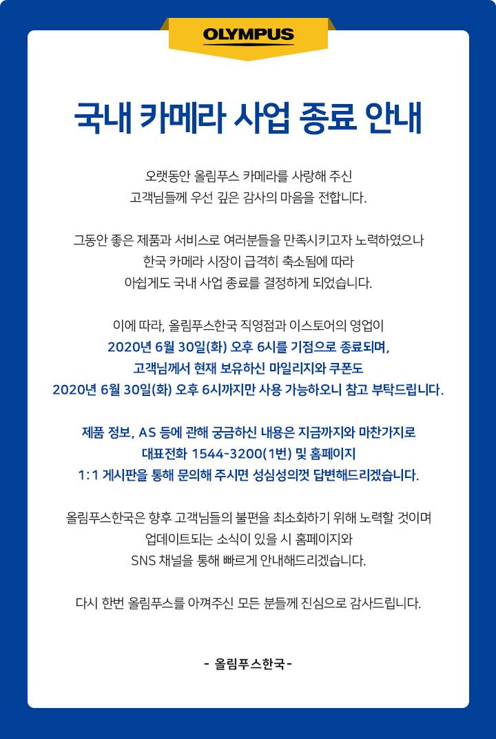 | Subject | 올림푸스, 한국서 카메라 사업 철수 |