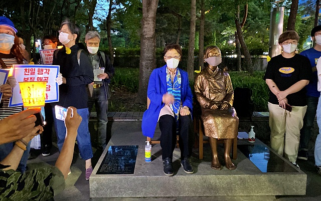 https://news.v.daum.net/v/20200528071500515 이용수 할머니, 대구 수요시위 깜짝 방문..."함께 해결하고 투쟁하자" http://www.pn.or.kr/news/articleView.html?idxno=18107 "믿으시고 같이 우리 투쟁합시다." 일본군 위안부 피해자 이용수 할머니가 27일 저녁 대구수요시위에 참석해 한 말이다. 대구시민촛불연대가 주최한 이 행사는 이용수 할머니의 25일 기자회견 후 대구지역에서 처음으로 열린 수요시위였다. <오마이뉴스>는 대구수요시위에 참석한 한 시민으로부터 영상을 입수했다. 이 영상에 따르면, 이 할머니는 대구 2·28공원 '평화의 소녀상' 앞에서 열린 수요시위에 예고 없이 등장해 소녀상 옆 빈 의자에 앉아 시위에 동참했다. 영상에는 이 할머니의 깜짝 방문에 놀라는 시민들의 모습도 고스란히 담겼다. 수요시위 종료 후 소감을 묻는 말에 이 할머니는 "(기자회견에서) 할 말 다 했어요. 그 말만 믿으세요"라면서 "믿으시고 같이 우리 투쟁합시다"라는 말을 남기고 현장을 떠났다. 할머니가 원하는 건 위안부 피해자들을 위한 운동 자체의 존재 의의를 부정하는 것이 아니에요. 방향이 잘못되었다는 거에요. 카메라 앞에서 쑈하기보다는 한일 양국 청소년의 교류를 통한 미래세대에의 교육을 통해 알게 하자는 거에요. 운동권의 투쟁 방식을 넘어서자는 거에요. 또 수요시위를 진행하는 단체들에게 문제가 있다는 말씀은 내부적으로 개혁을 해야 한다는 말씀이지 위안부 자체가 없었다고 한다거나 하는 극우세력의 물타기는 할머니도 싫어할 거에요. 그런 의미에서 할머니가 27일 수요시위에 잠깐 참석하셨을 거라고 생각합니다. 1