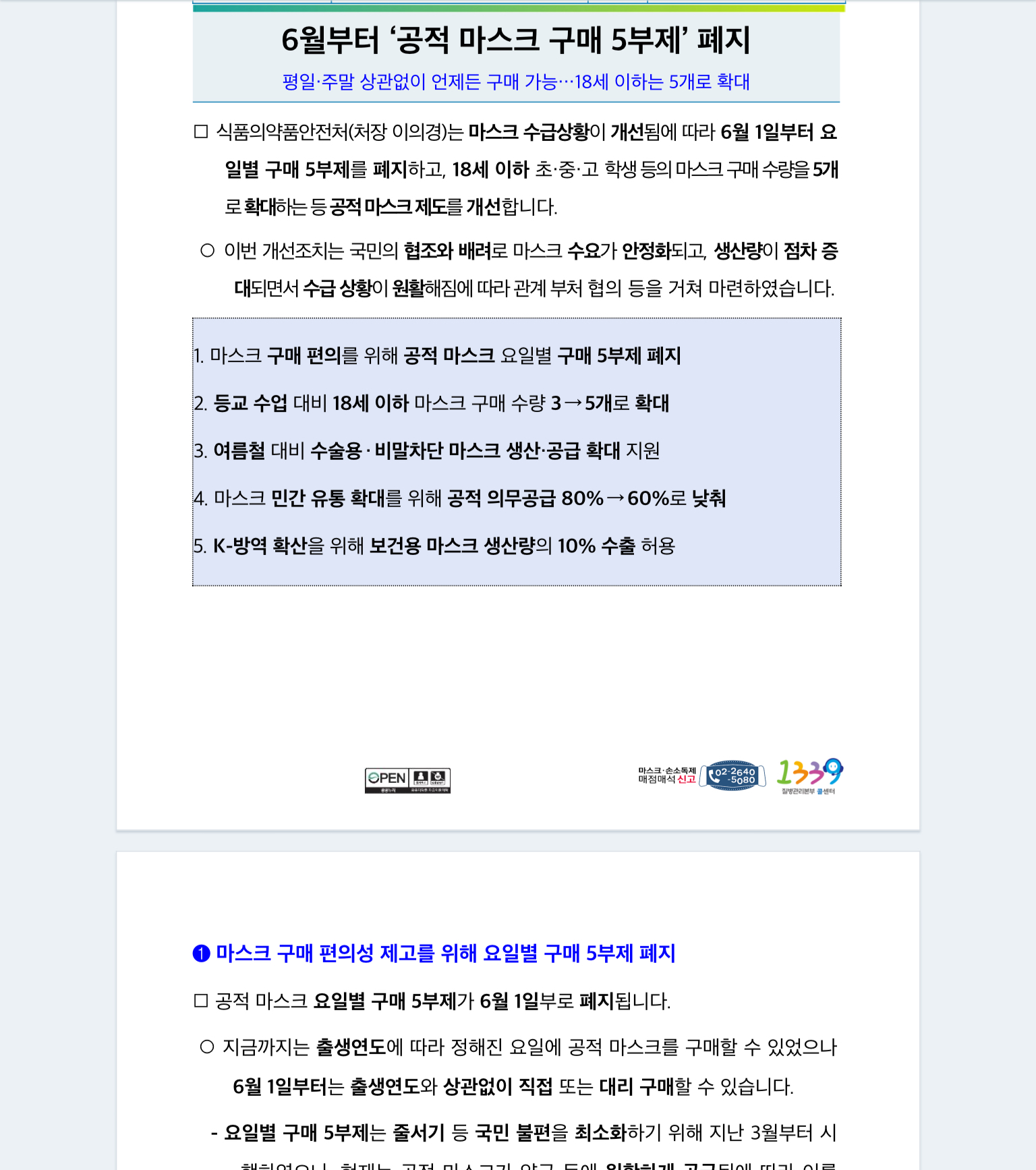 6월부터 마스크 5부제 안 한다…18세 이하 구매수량은 3→5개로(종합)