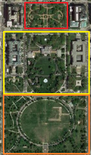 노란색 부분이 기존의 백악관 보안 출입 통제 구역으로 평소 일반인 출입이 통제되는 곳이고, 최근 일반인 출입이 허용되던 공원인 빨간색, 주황색 범위까지 임시 담장이 만들어져서 출입이 금지되고 있습니다.