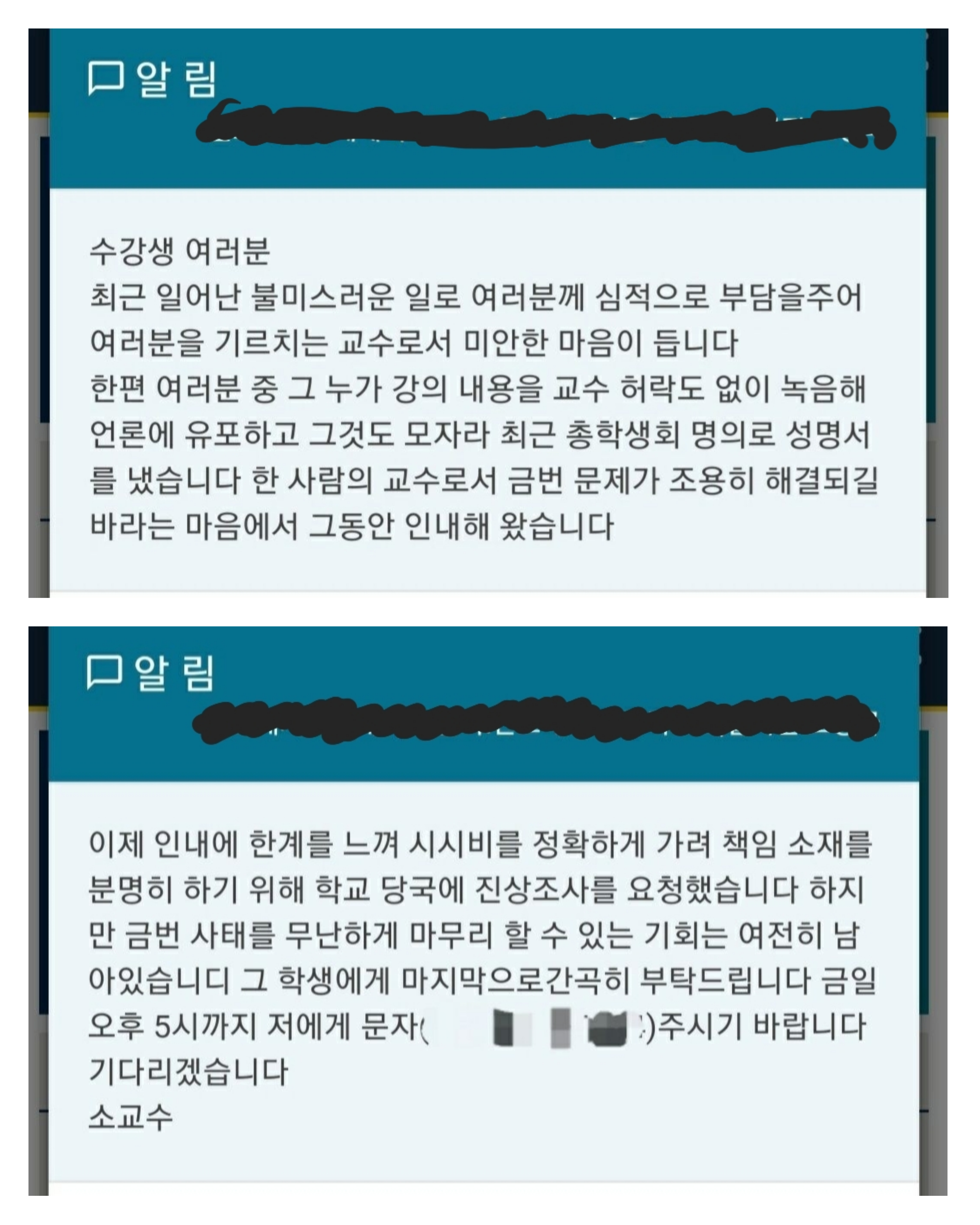 https://news.v.daum.net/v/20200617193601619 한양대학교 학생이 코로나19 사태와 관련해 학교 측이 등록금을 반환하고 학기말고사를 비대면(온라인) 방식으로 치를 것을 요구하며 실제 혈서를 쓴 것으로 확인돼 대학가에 적지 않은 파장이 예상된다. https://news.v.daum.net/v/20200610203412211 학생들이 대면 수업과 대면시험에 반발하고 있는 한양대에서도 한 교수의 발언이 논란이 됐습니다. 보직을 맡고 있는 이 교수는 온라인 시험을 요구하는 학생들과의 면담 과정에서 학생들에게 "혈서라도 써서 낼 거냐"고 말했습니다. 기획처장 교수가 비대면 시험 두고 혈서 쓸거냐고 발언했더니, 학생이 진짜 혈서 써버렸네요;;; 쫄리면 x지시던가, 등록금 뱉어내던가... ㅎㄷㄷㄷㄷㄷ 0