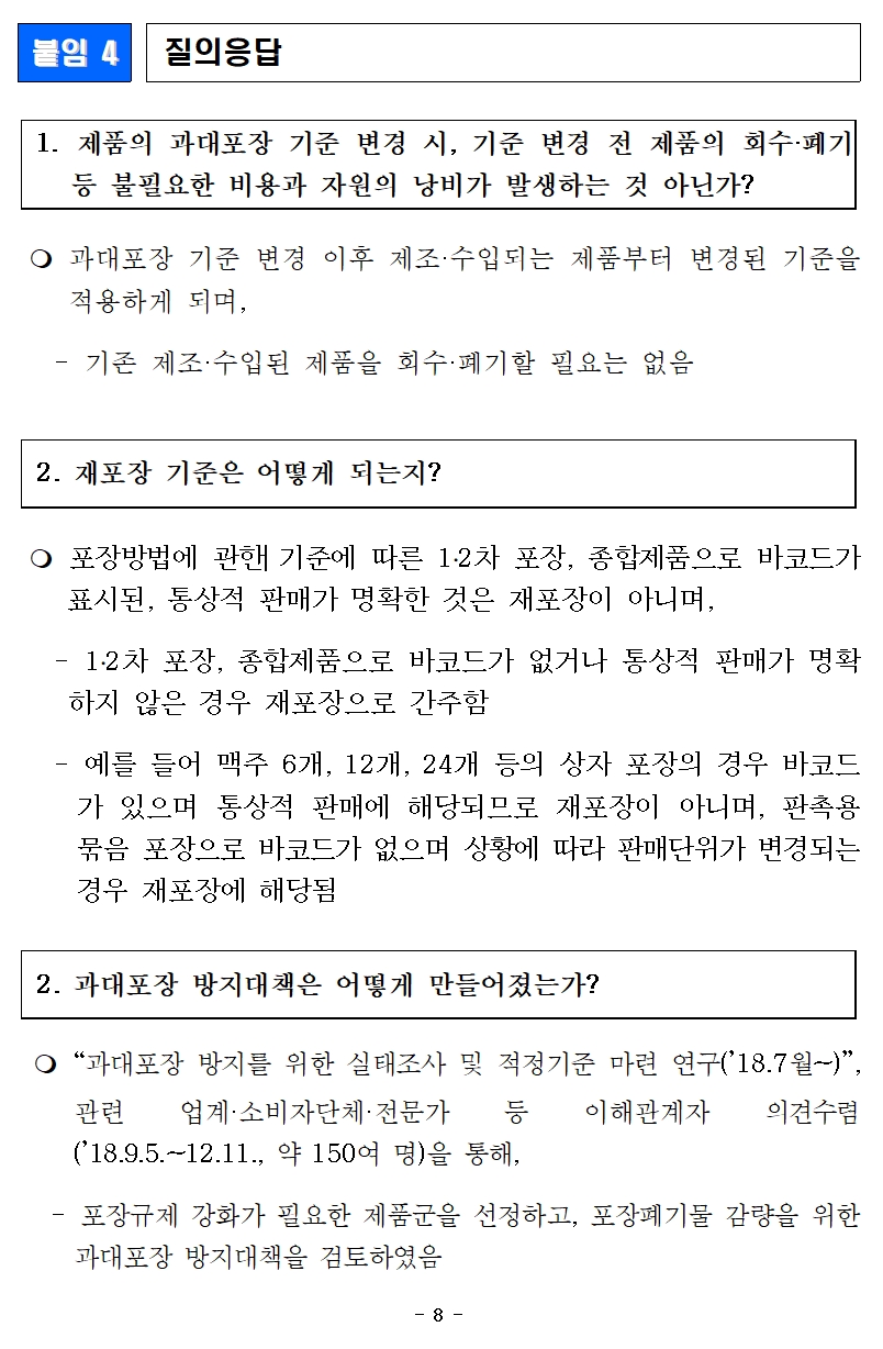 테이프 같은 걸로 묶어 파는 건 문제가 안되는 데 멀티팩이니 해서 한 번 더 포장하는 거 규제하겠다는 건데 무조건 묶어 팔아 할인하면 안되는 것처럼 써놨네요.