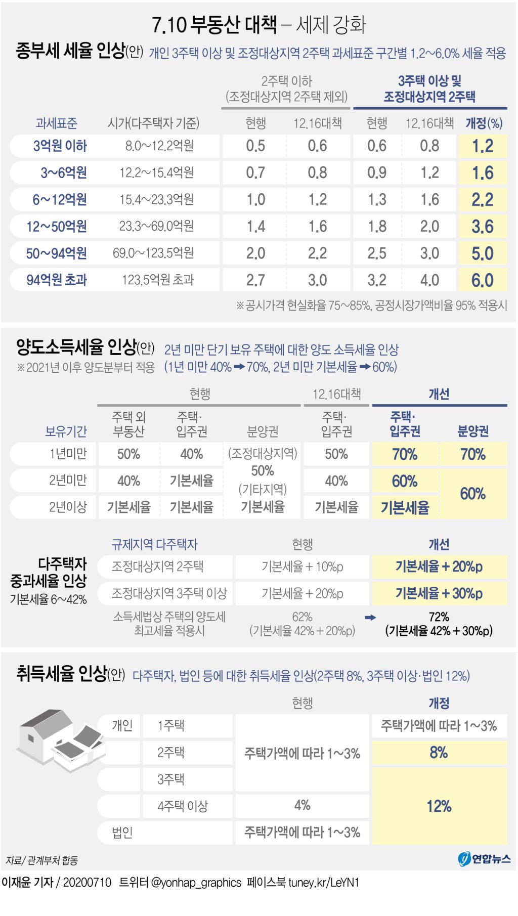 이미 매수 진행 중인 경우, 취득세 폭탄을 걱정하는 분들이 많던데, 7월 10일 발표 이전에 계약을 체결한 경우 지난 1월 4주택자 관련 변경 때처럼 일반매매는 3개월, 분양은 3년 경과 기간을 둔다고 합니다.
