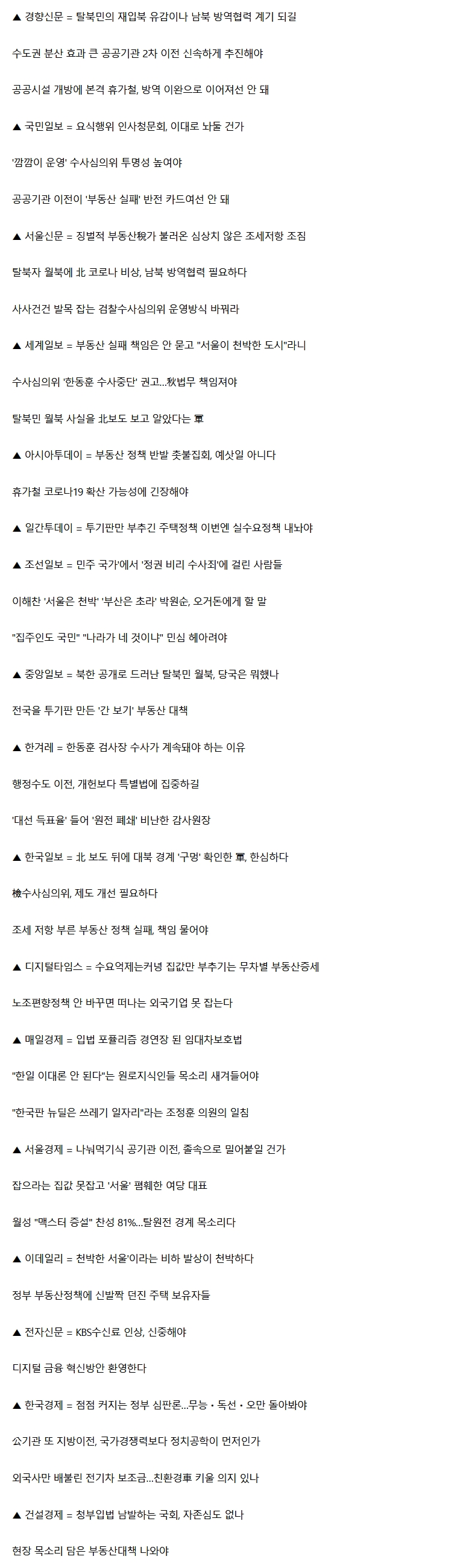 오늘 주요 신문 사설 제목들이...