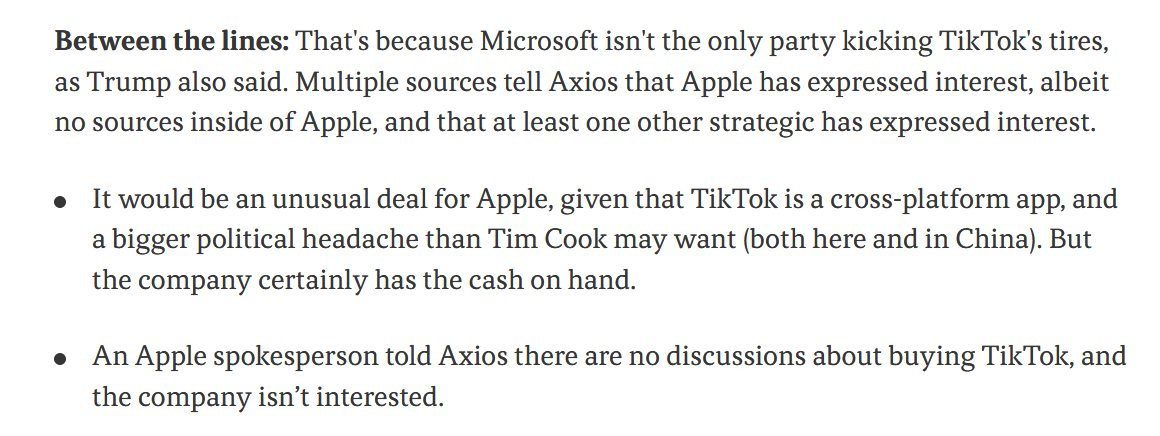 AXIOS에 따르면 애플이 공식적으로는 부인하지만, 애플도 인수를 진지하게 고려하고 있다는 이야기도 있습니다.