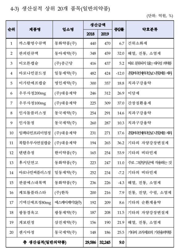 2019년 국내 의약품 시장규모 전년대비 5.2% 증가 (식약처 보도자료)