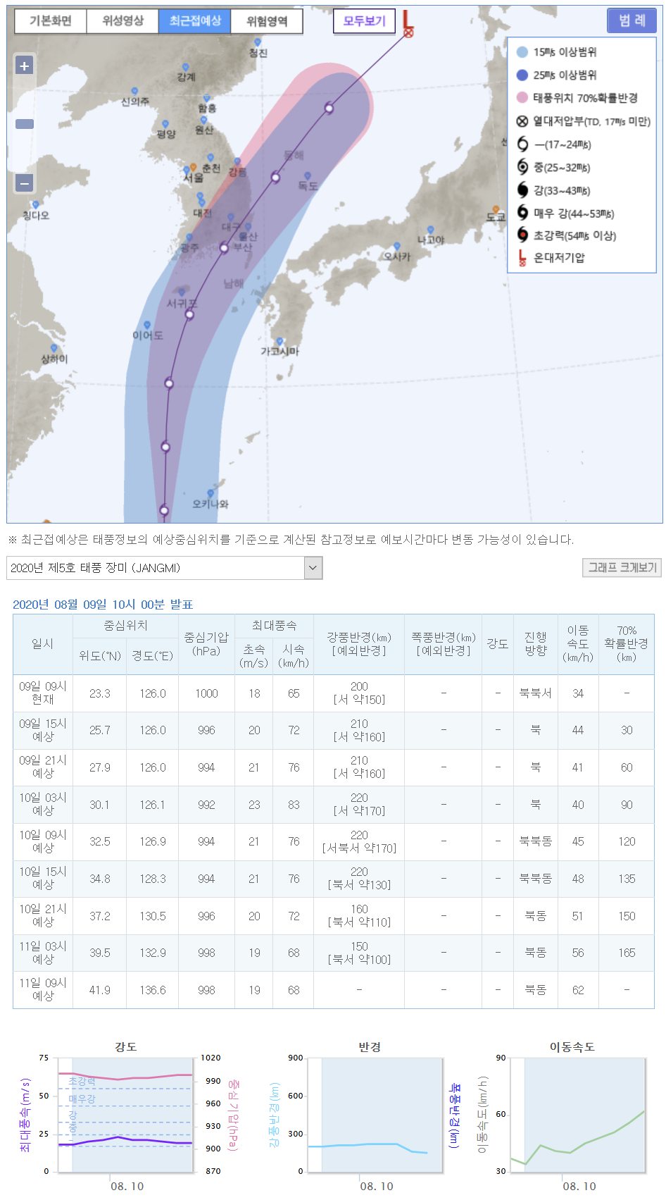 https://www.yna.co.kr/view/AKR20200809009251530 기상청 태풍 정보 https://www.weather.go.kr/weather/typoon/detail.jsp 예상 진로는 여러 곳이 대부분 비슷한데 비는 중부에 제법 올 것 같고, 남부는 바람 피해도 있지 않을까 걱정됩니다. 0