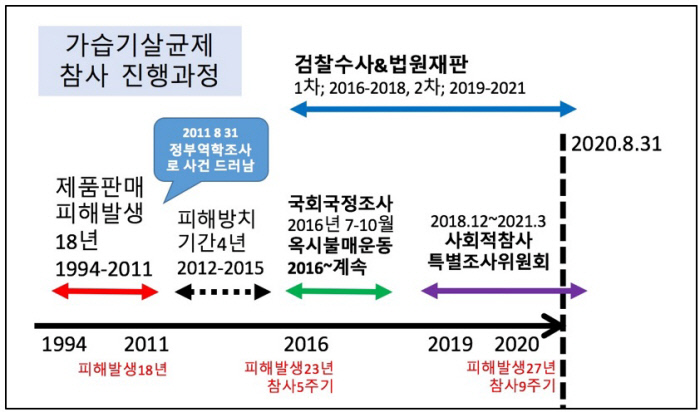 http://news.khan.co.kr/kh_news/khan_art_view.html?artid=202008311736001 사참위에서 가습기살균제 제품 성분 분석 결과를 발표했습니다. 판매 제품의 농도마저 일정하지 않았다니 이럴 수가 있는지 http://socialdisasterscommission.go.kr/news/report/Read.jsp?ntt_id=3884 그리고 오늘은 2011년 가습기살균제 피해가 알려진 지 9년이 되는 날입니다. http://news.khan.co.kr/kh_news/khan_art_view.html?artid=202008291804001 진상규명은 더디고, 유족이 피해 입증 책임을 떠맡고 피해등급이 갈리는 점이 유족들을 힘들게 하고 있습니다. 2