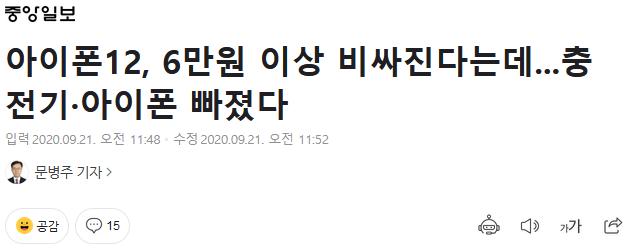 IT/컴퓨터아이폰12, 6만원 이상 비싸진다는데...충전기·아이폰 빠졌다 12 |