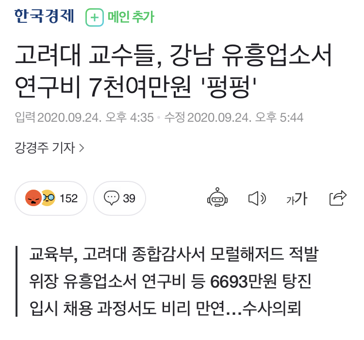 Subject   고려대 교수들, 강남 유흥업소서 연구비 탕진…7천여만원