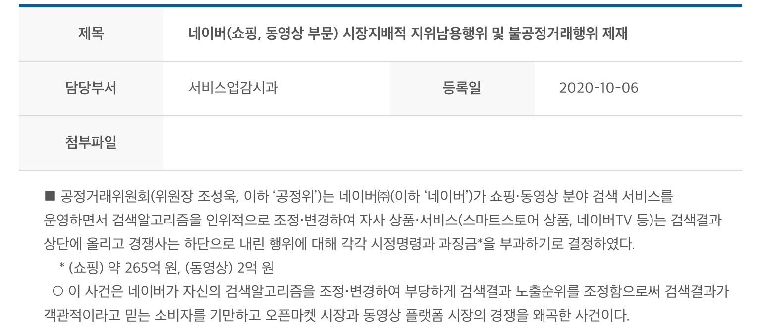 Subject   실체 드러난 네이버의 검색 알고리즘 조작…신뢰성 타격 불가피