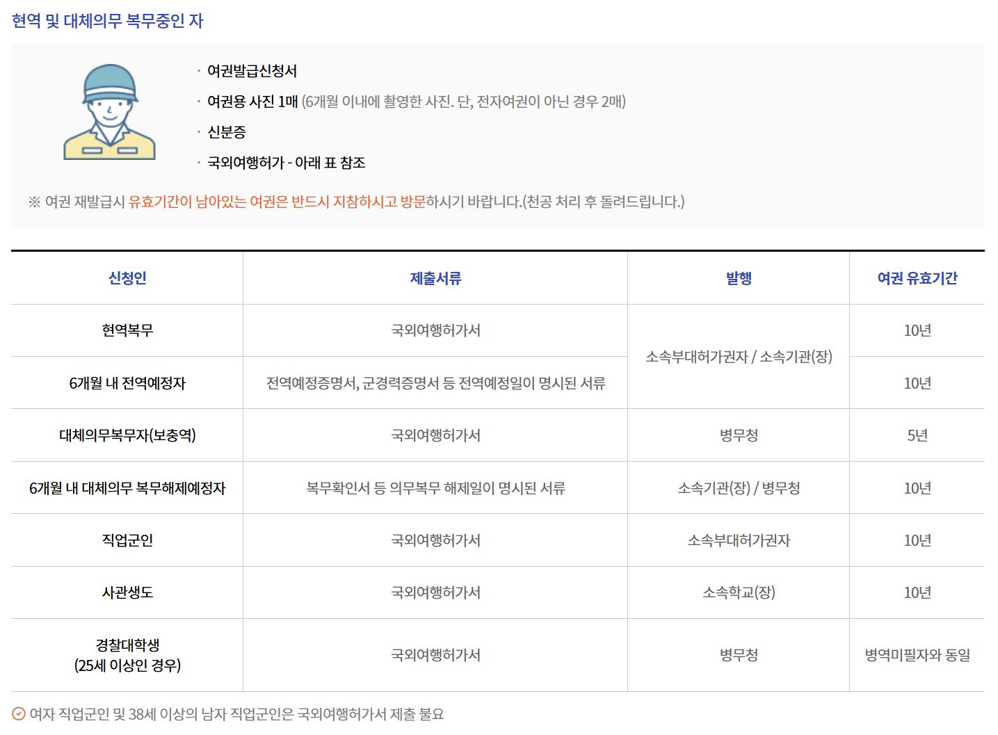 6개월 내 전역예정자는 국외여행허가서 대신 전역예정증명서 등으로 갈음할 수 있다고 합니다.
