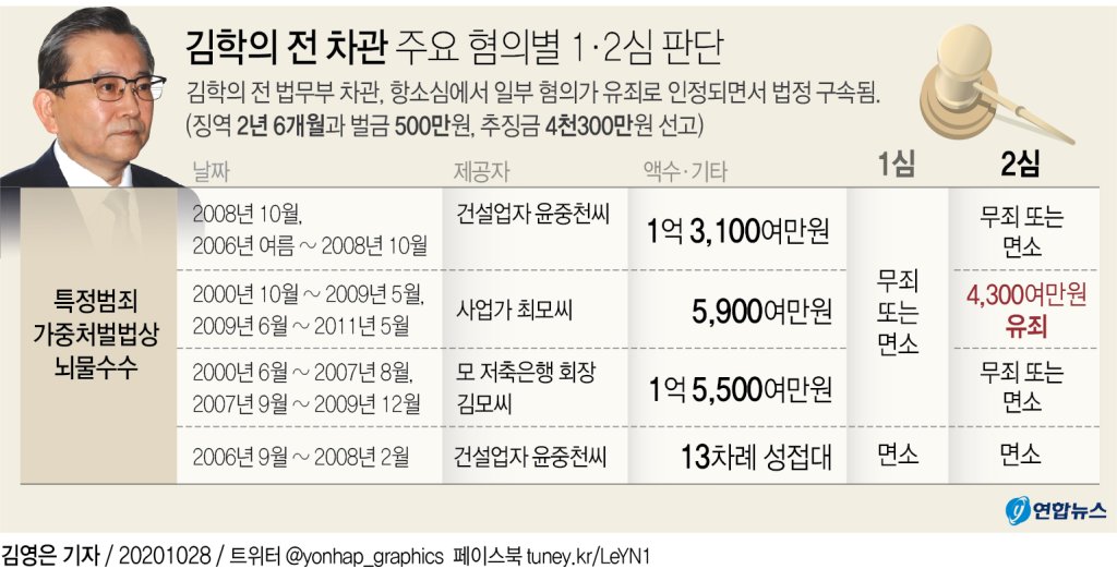 사회김학의, 2심 일부 유죄로 법정구속…징역 2년6개월(종합) 5 |