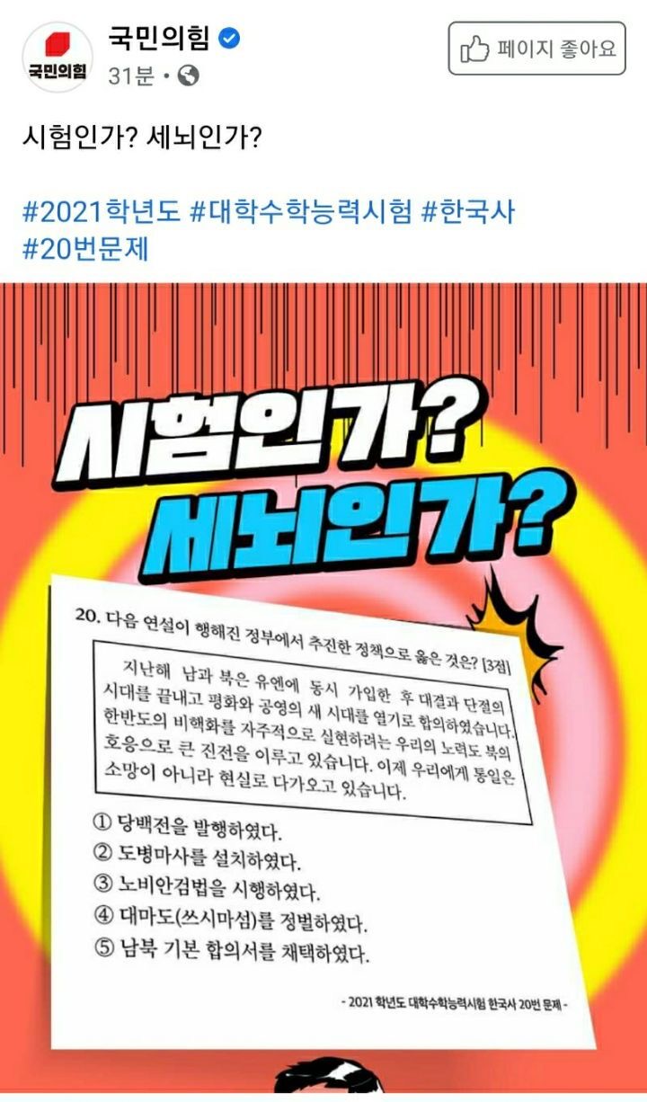 근데... 그걸 좋다고 덮썩 문 국힘과 조선이라 놀릴게 아니라 영리한 작품이죠. 조선에서 타이틀 뽑고 국힘에서 받아먹으면 사실관계는 이미 중요하지 않죠. 문재인이 수능에 자신 연설문 출제했다고 각인되었으니 소기목적 달성.