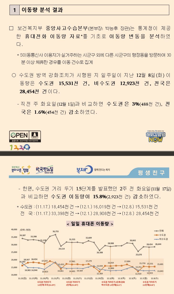 12월 6일자 구글 리포트입니다만, 이동량이 단계 격상 이후로 줄어드는 것 같긴 합니다.