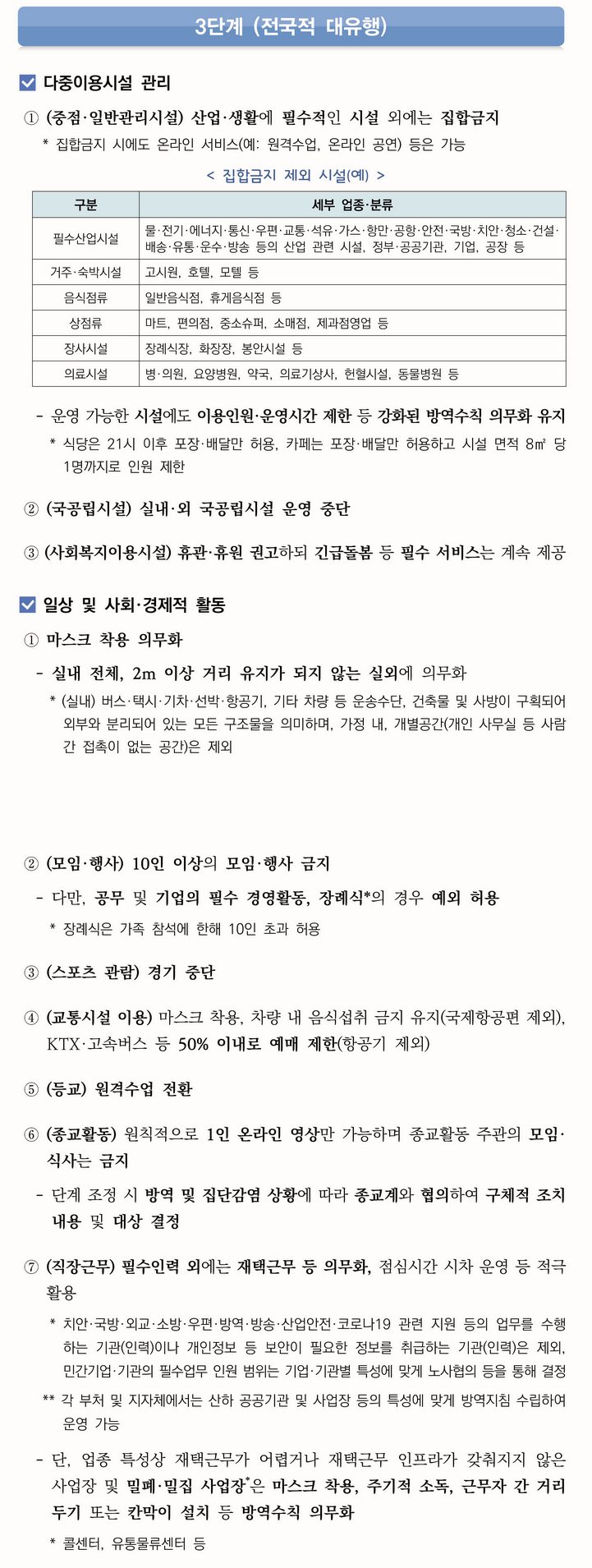 11월에 정했던 것에서 어떻게 바뀔지 궁금합니다. 식당 등 감염 위험이 높은 곳을 막아야 할 것 같지만, 안 먹고 살 수도 없고, 모두가 재택근무가 가능한 것도 아니고. 정하는 입장에서도 머리가 아플 것 같습니다.