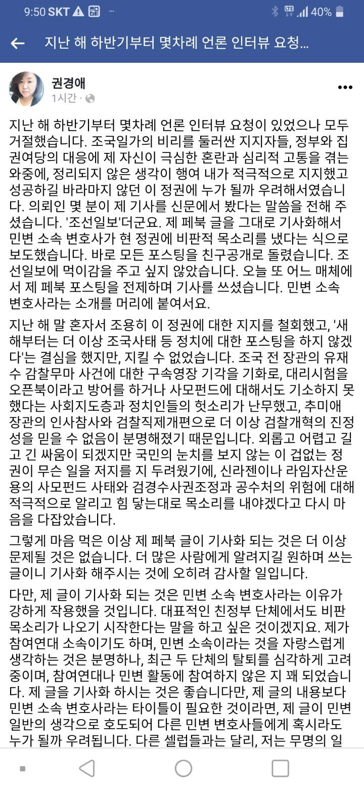 민변 출신 권경애 변호사의 말에 동감합니다.