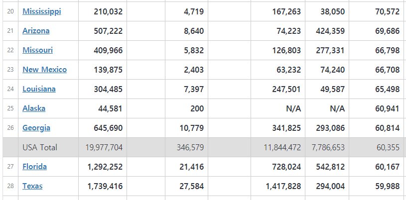 현재 루이지애나 주는 460만 인구 중 30만 4천 명이 확진되었으며 7400여 명의 사망자를 냈습니다.