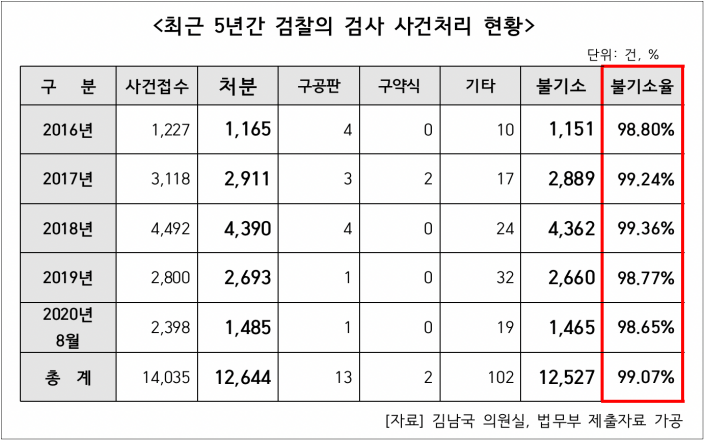 https://news.v.daum.net/v/20210118160257462 검사 술접대 의혹에 연루된 전·현직 검사 4명 전원이 검찰 수사가 본격화되기 직전 휴대전화를 교체한 것으로 확인됐다. 일부 검사들은 검찰 내부망인 ‘이프로스’의 메신저 대화 내역을 삭제하거나 업무용 컴퓨터를 바꾸는 등 증거인멸에 나선 정황도 포착됐다. 피의자 신분인 이들은 “술자리 자체가 없었다”고 해명하면서도 자신의 무고함을 입증할 핵심 증거를 없앤 것이다. - 김봉현으로부터 술접대를 받은 혐의로 재판에 넘겨진 검사 출신 변호사 a씨와 라임 사건 수사를 담당했던 검사 b씨 : 검찰 수사가 본격화되기 직전 휴대전화를 새로 개통함 - 술자리 동석이 의심되었던 다른 검사 c씨, d씨 : 이들 역시 휴대전화를 교체함. 수사팀의 압수수색은 이들의 휴대전화 교체 이후 진행되어 핵심 물증 확보에 실패함. c씨는 이프로스 메신저 대화 내역과 자신의 업무일지 일부를 파쇄했고, d씨는 업무용 컴퓨터를 교체함. - a, b, c, d씨 : 술자리는 있었으나 그냥 후배 변호사와의 술자리였을 뿐이라고 항변함. 검사를 기소하지 않는 검찰... 검사 불기소율 99% http://www.impeternews.com/news/articleView.html?idxno=50485 1. a 부장검사가 여성을 성추행해서 경찰이 성추행 혐의 기소 의견으로 사건을 검찰에 넘겼지만 부산지검은 a부장검사에 대해 불기소 처분을 내림. 사건 발생 이후 두달간 직무정지 조치를 내리는 데에 그침. 2. 김형준 전 부장검사가 성접대를 받았음. 수사 당시 김 검사가 접대부와 호텔방에 들어갔고, 접대부가 그 댓가로 돈을 받은 사실까지 드러남. 그러나 검찰은 성매매 혐의 없음으로 불기소 처분을 내림. 3. 서울시 공무원 간첩 조작 사건에서 검찰은 유호성씨를 간첩으로 몰려고 조작된 증거를 제시했으나 서울중앙지검은 증거불충분 혐의없음으로 불기소 처분내림. 검찰은 검찰 내부의 인사들에게 관대합니다. 서로 봐주고 죄가 있어도 덮어줍니다. 이번에 김봉현 술자리 관련 증거 은폐 의혹이 불거졌습니다. 증거를 은폐한 다음에 수사가 이루어졌으니 당연히 물증 확보에 실패했겠지요. 그나마 걸린 의혹도 접대한 사람수까지 계산하여 1인당 나누는 계산법과 뇌물죄를 적용하지 않고 청탁금지법을 적용하는 법 적용의 재량권으로 2명의 검사를 불기소처분하는 데에 이르렀습니다. 그런데도 검찰이 그들이 말하는 것처럼 정의로운 집단인지 묻고 싶습니다. 3