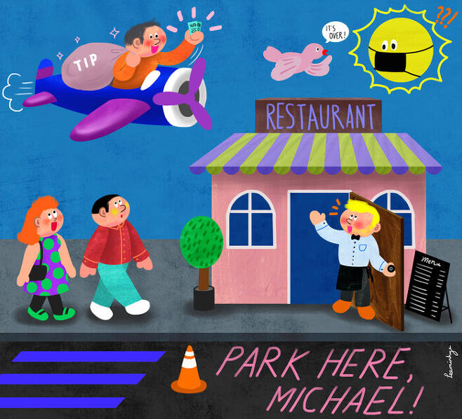 레스토랑의 팁 계산이 제일 골치 아프다. 코로나 시대에 그나마 한 가지 다행이다 싶은 게 있다면 그건 진짜 진짜 비싼 뉴욕 레스토랑에서 식사를 마치고 가뜩이나 비싼 음식값에 15%를 더 내야 한다는 것 때문에 고민할 필요가 없다는 것이다. 그 비싼 음식값에서 15%를 자발적으로 더 내야 한다니. 월급에 이미 음식을 테이블로 가져다주는 노동과 식사가 끝난 테이블을 치우는 노동의 대가를 월급으로 받고 있을 텐데 말이다. 팁을 받아갈 이유가 없다. 그래서 분명 나는 계산이 끝났는데도 팁을 또 달라는 웨이터 앞에서, 그뿐만 아니라 나에게서 또 팁을 받아가려는 버스 보이 앞에서 고민할 필요가 없어졌다는 것이다.