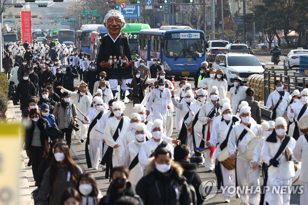종로거리를 지나 보신각에서 거리굿을 하고